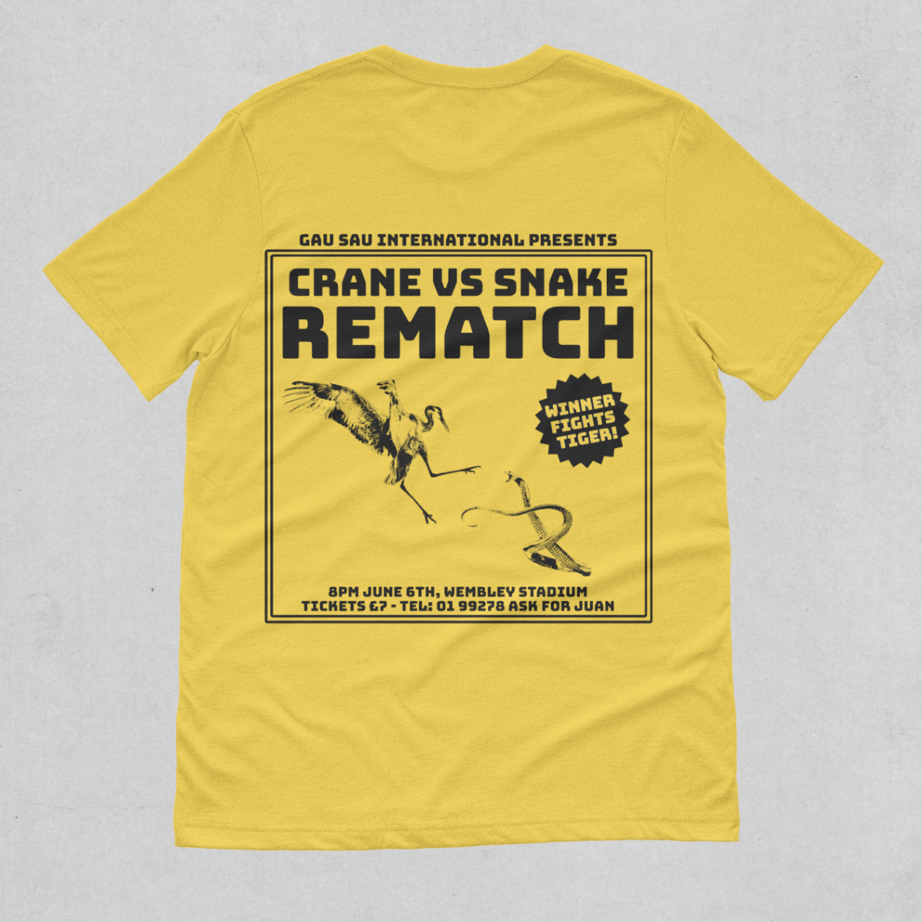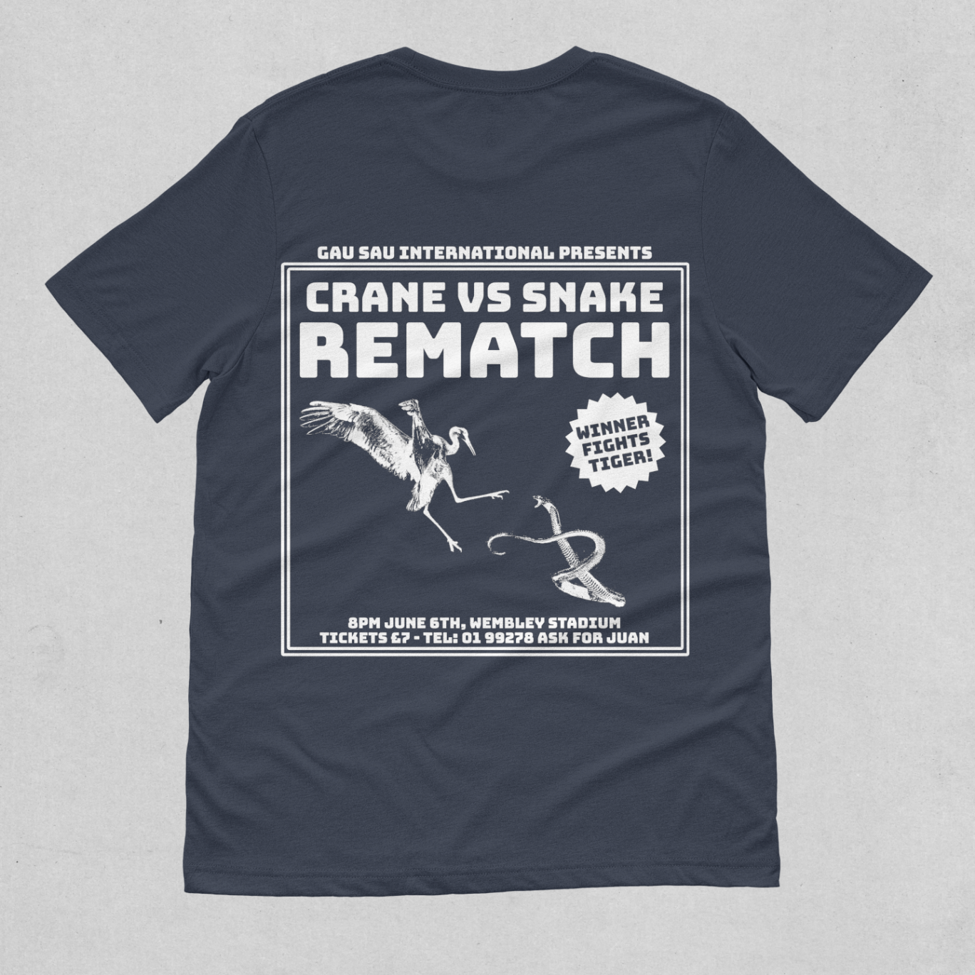 The story of the fight between the Crane and the Snake is known throughout many martial arts, and is used as a lesson in embodying the qualities of each animal: the large, graceful and sweeping movements of the Crane, versus the compact, focused and shocking strikes of the Snake. Depending on what is being taught, the corresponding animal is said to have won... Either way, the winner goes on to face the Tiger!