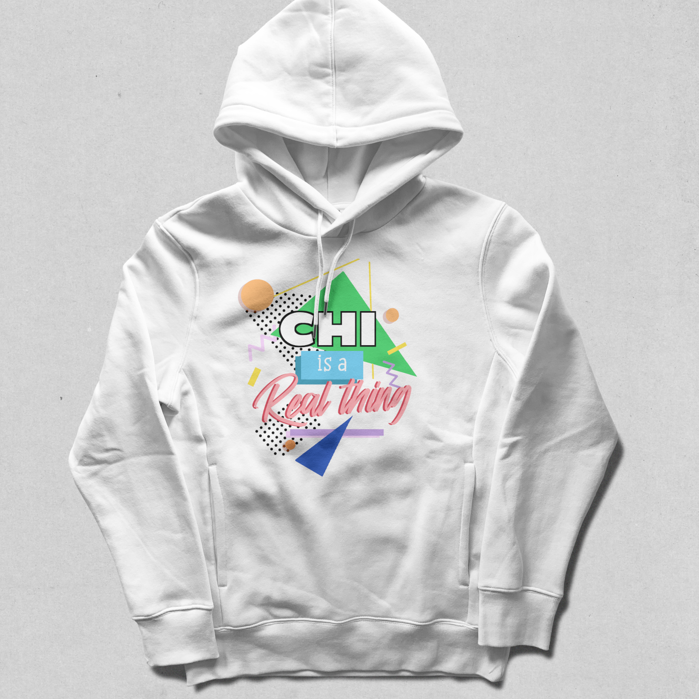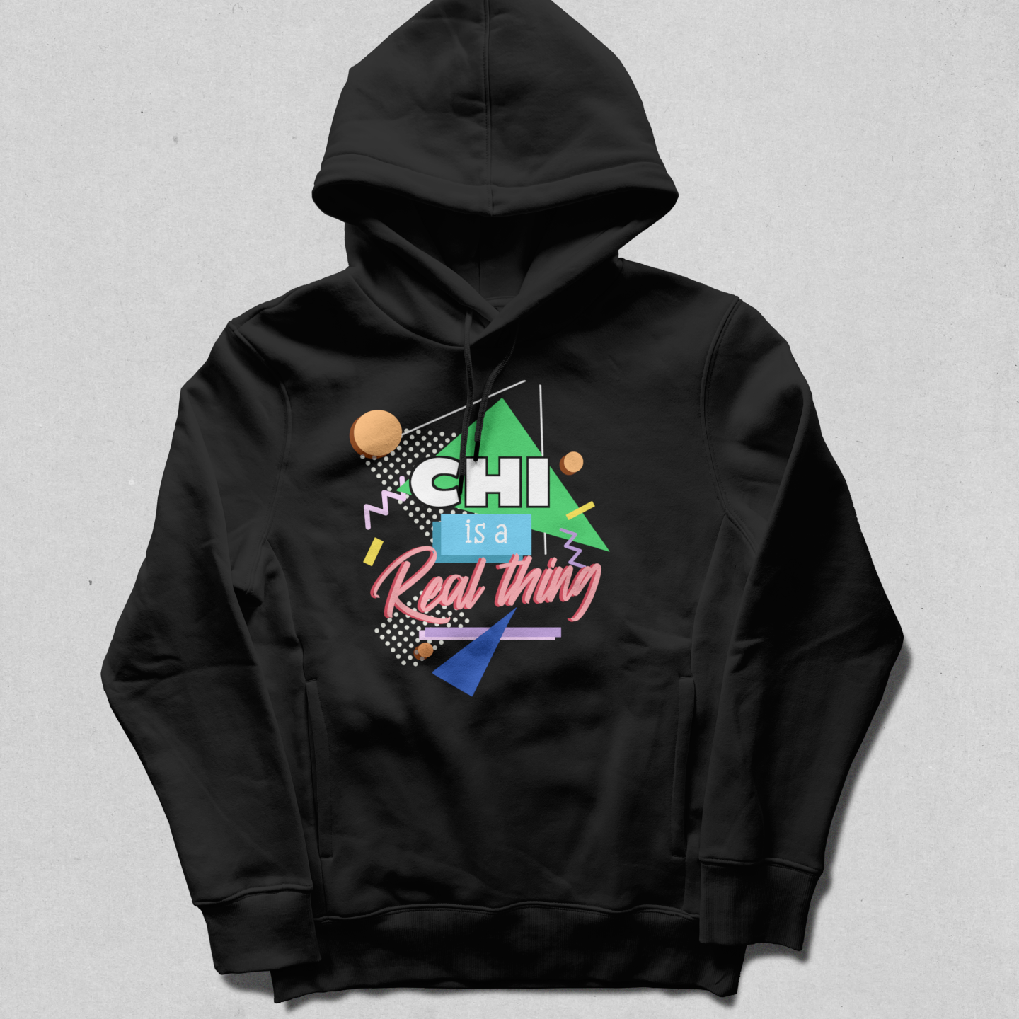 Chi is the lifeforce of the universe: it moves through and connects all beings. This design is inspired by the early 90's and is intended to inspire just the right balance of attitude that's needed when thinking upon such mysterious concepts.